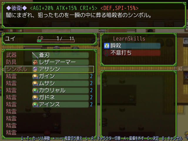 スキルは、【精霊】を装備することで使用可能になります。
